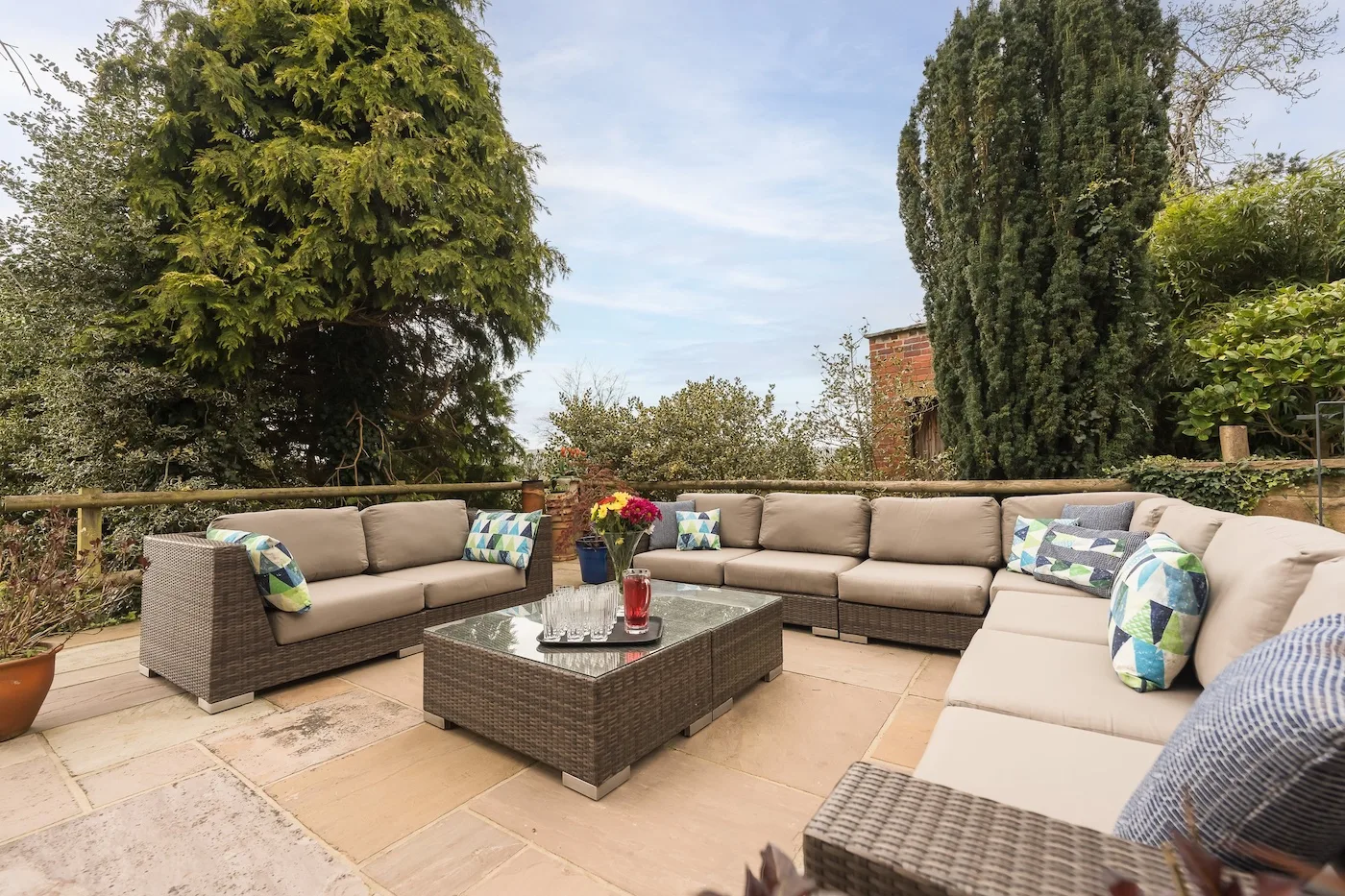 Outside, there’s loads of space to enjoy. The patio has comfy rattan sofas, a large dining table with chairs for ten, a chiminea for evening warmth, and an 8-seater Jacuzzi hot tub with waterfall, massage jets, lights, and Bluetooth (available for an extra £200). The lawned garden is perfect for kids’ games or simply soaking up the sunshine.