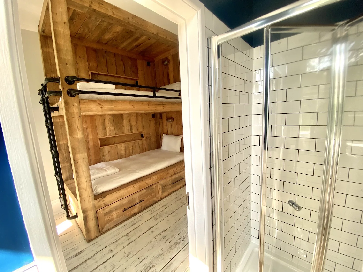 All eight bedrooms are en-suite with king-size beds, and one is on the ground floor, making it great for less able guests. There’s also a ground-floor sauna with en-suite shower and bath, plus a separate toilet in the porch.