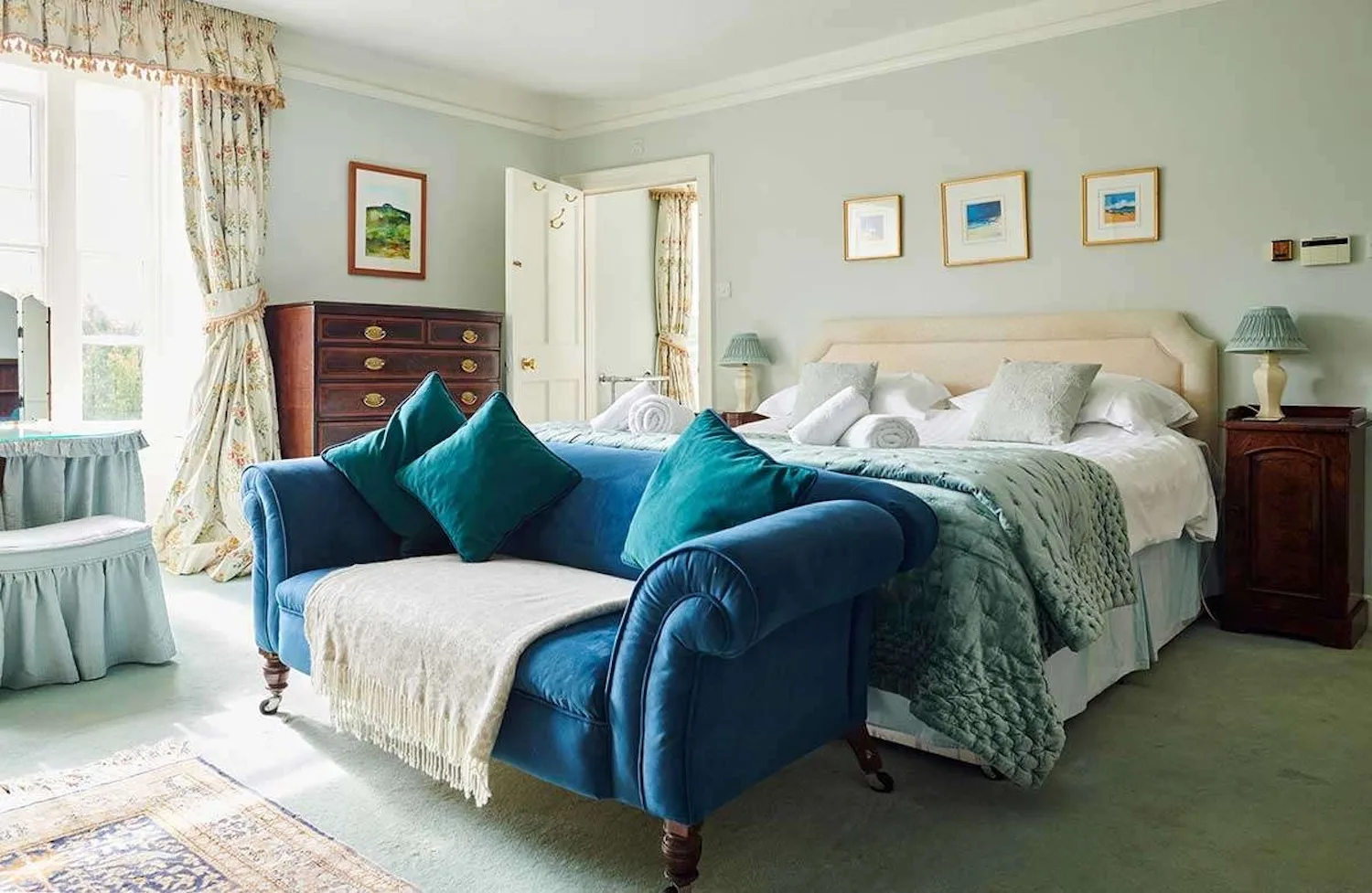 This gorgeous listed house has eight bedrooms and sleeps up to 18 people – just the thing for family get-togethers or a break with friends.
