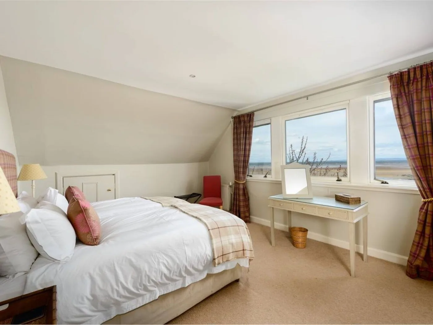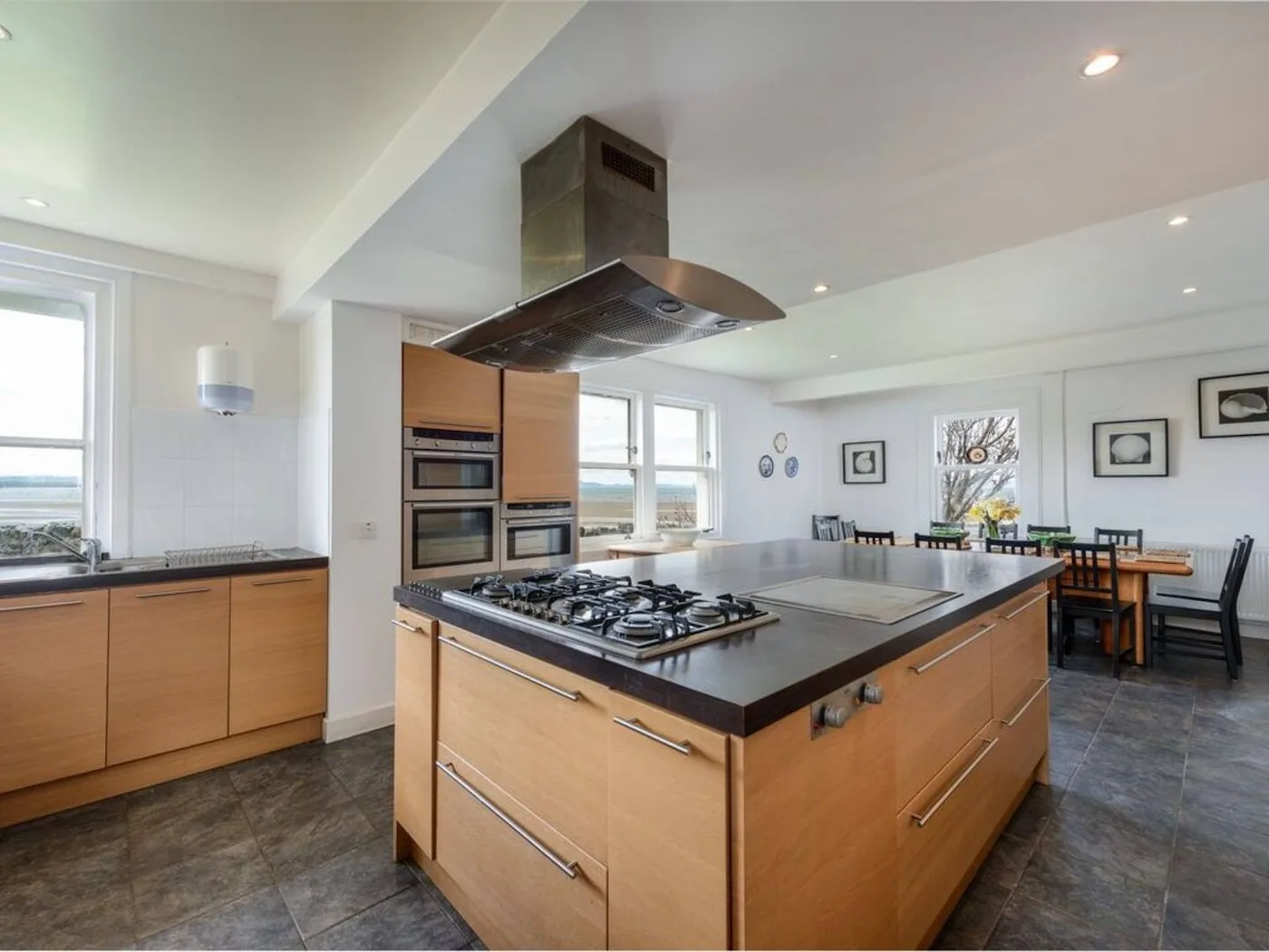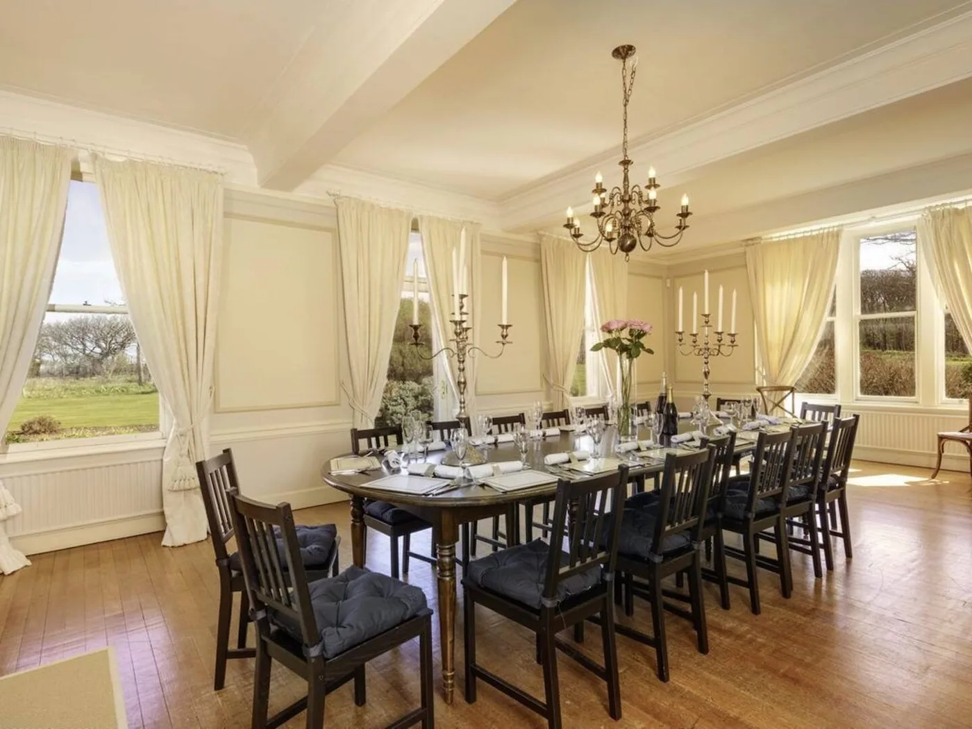 The public rooms are spacious, with a large sitting room, open log fires, a beautiful period panelled dining room and a fully equipped kitchen with spectacular views.