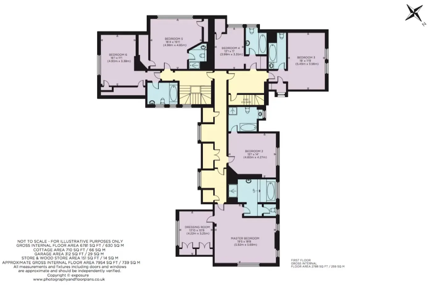 The house has six bedrooms, all with sea views and en-suite bathrooms. There is a further ground floor bedroom which is not en-suite. Sleeps a total of 14 across the 7 bedrooms.