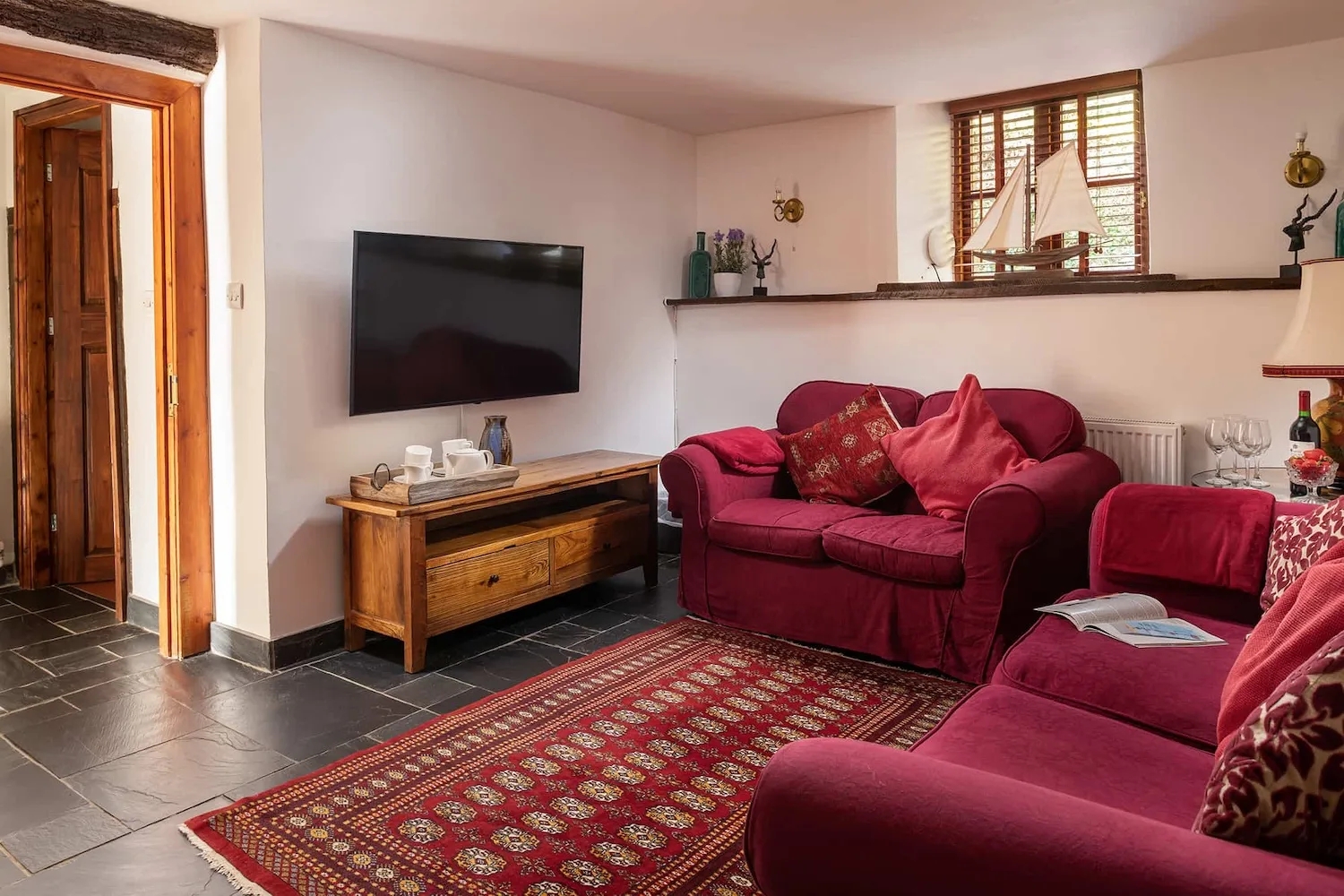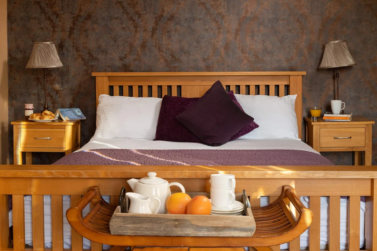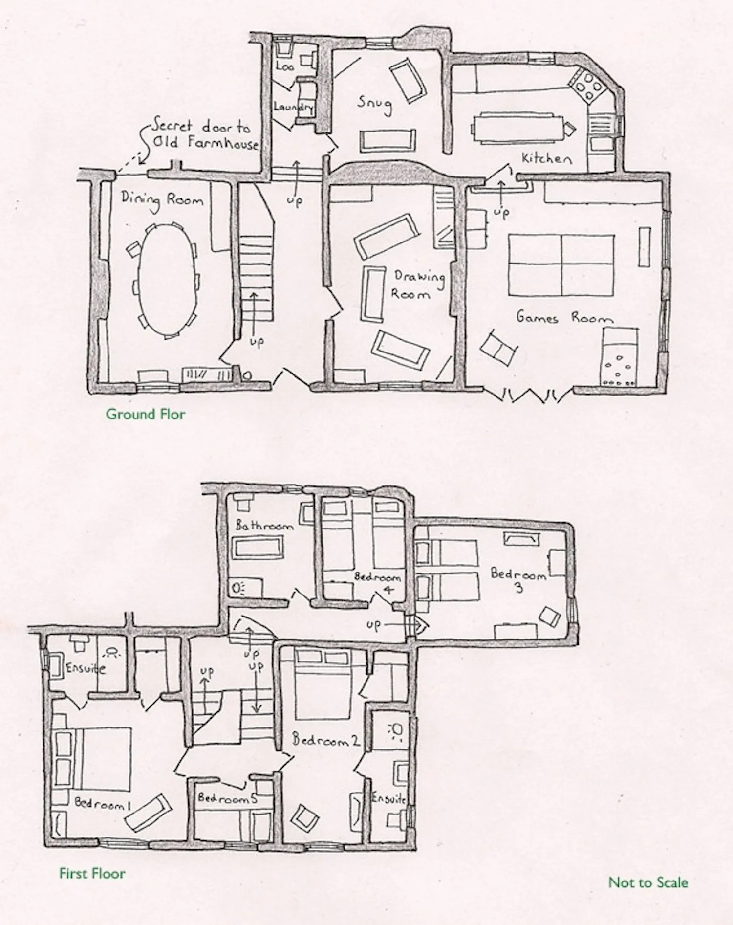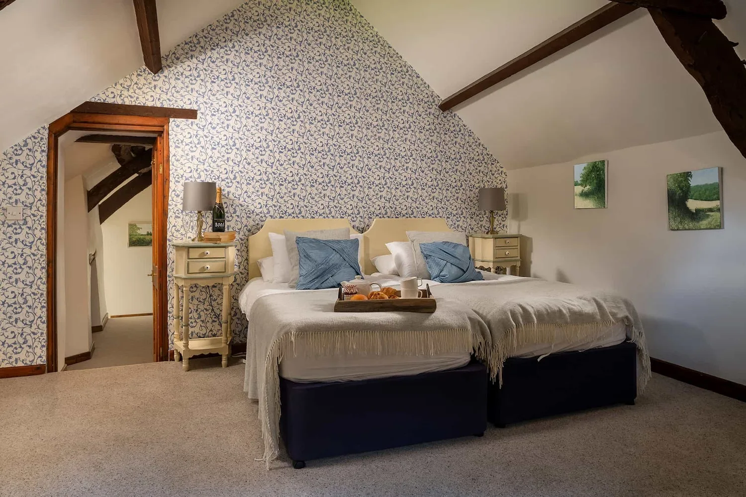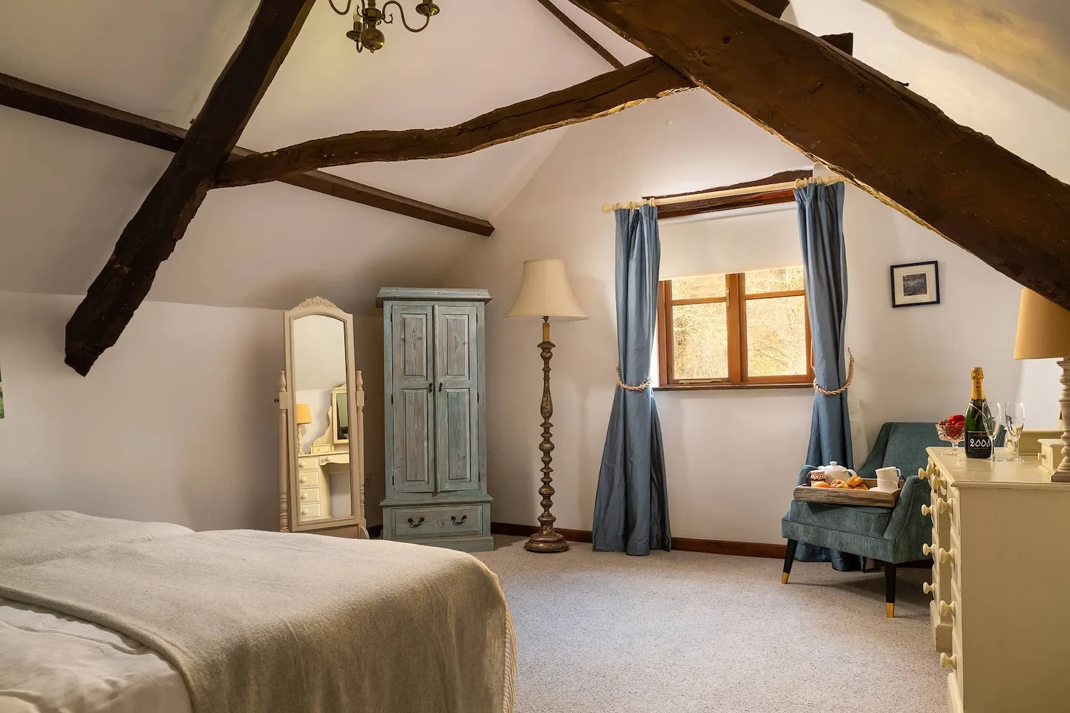 When you step inside, you’ll find the dining room and sitting room on either side of the hallway, both full of character. Upstairs, there are two king-size bedrooms, each with an en-suite and lovely views over the valley. Both can take an extra single bed if needed (for an additional charge). Between them sits a cosy single bedroom with the same stunning outlook.