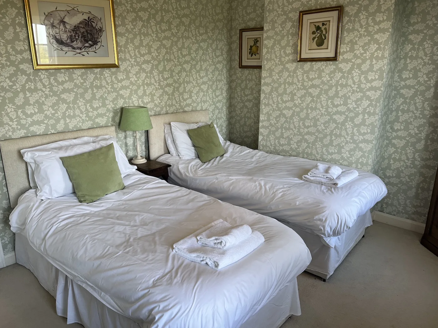 The property has five very comfortable, spacious bedrooms — one king-size double and four twins with large single beds. All come with luxury sheets, duvets and towels. There are three bathrooms, all with deep baths, one with a walk-in shower, and one bath even has a jacuzzi. You can enjoy the wonderful, unspoilt views while soaking in the bath.