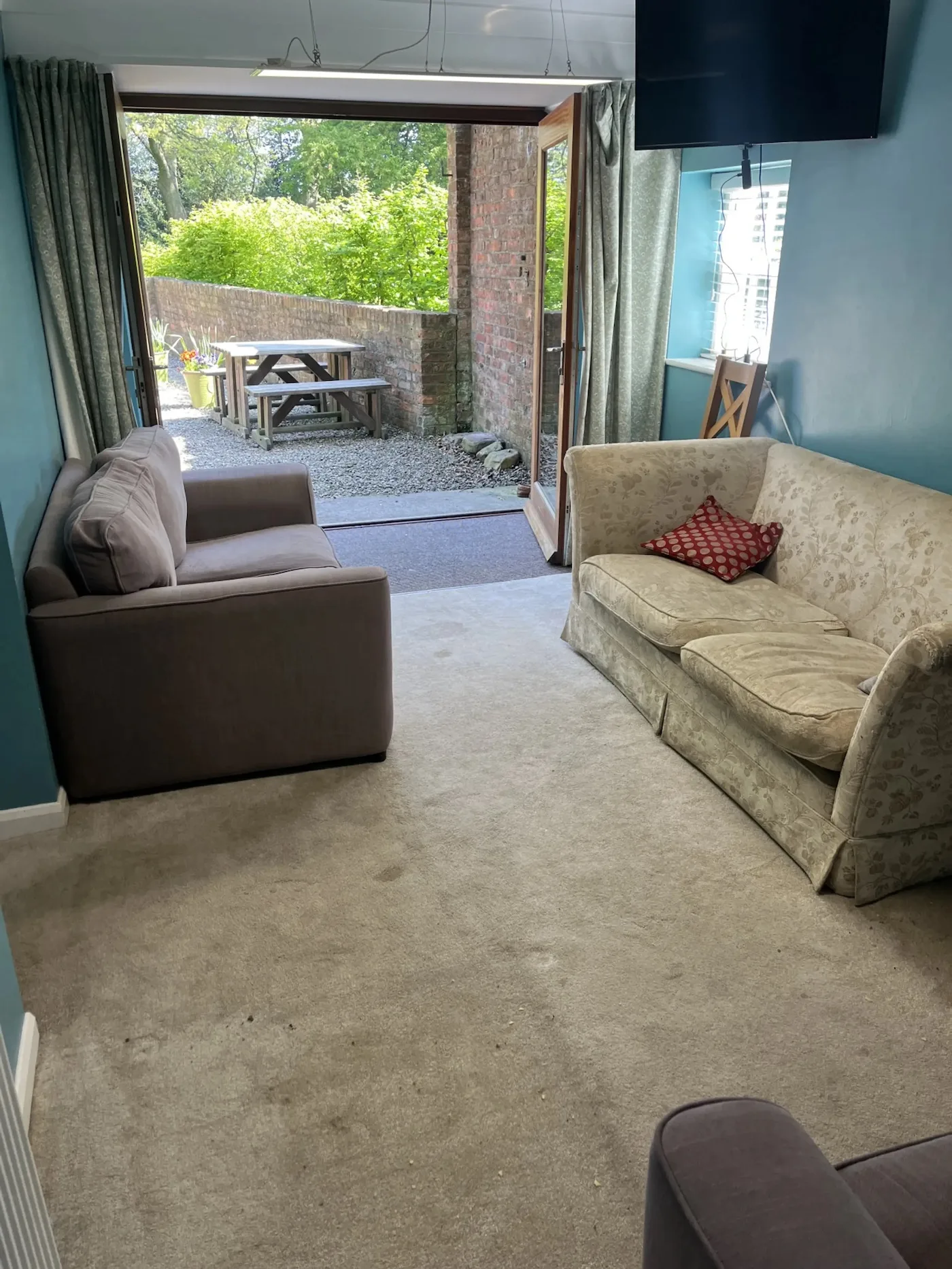 The large, fully equipped farmhouse kitchen has a big table for sit-down meals, a Belling cooker, dishwasher, washing machine and a large fridge/freezer. The sitting room has comfy sofas, glass French windows and a Smart TV. The property is eco-friendly too, with solar-powered electricity and sustainably sourced products throughout.