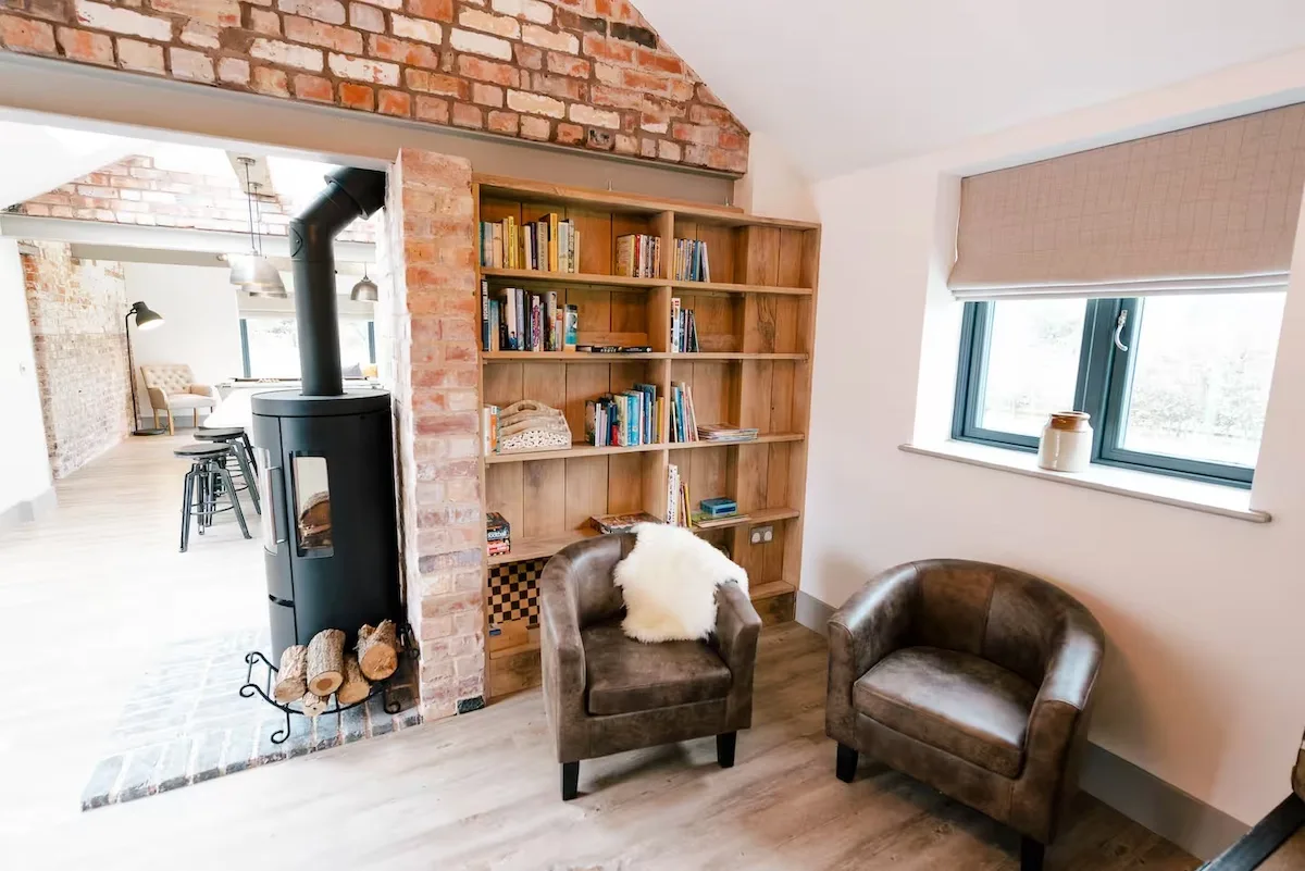 Finished to a really high standard, this is the perfect spot to unwind and switch off. You’ve got a double-sided log burner, hot tub, pool table, private courtyard, a big garden, an open-plan living area, a large dining table and plenty of comfy beds.