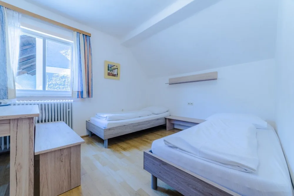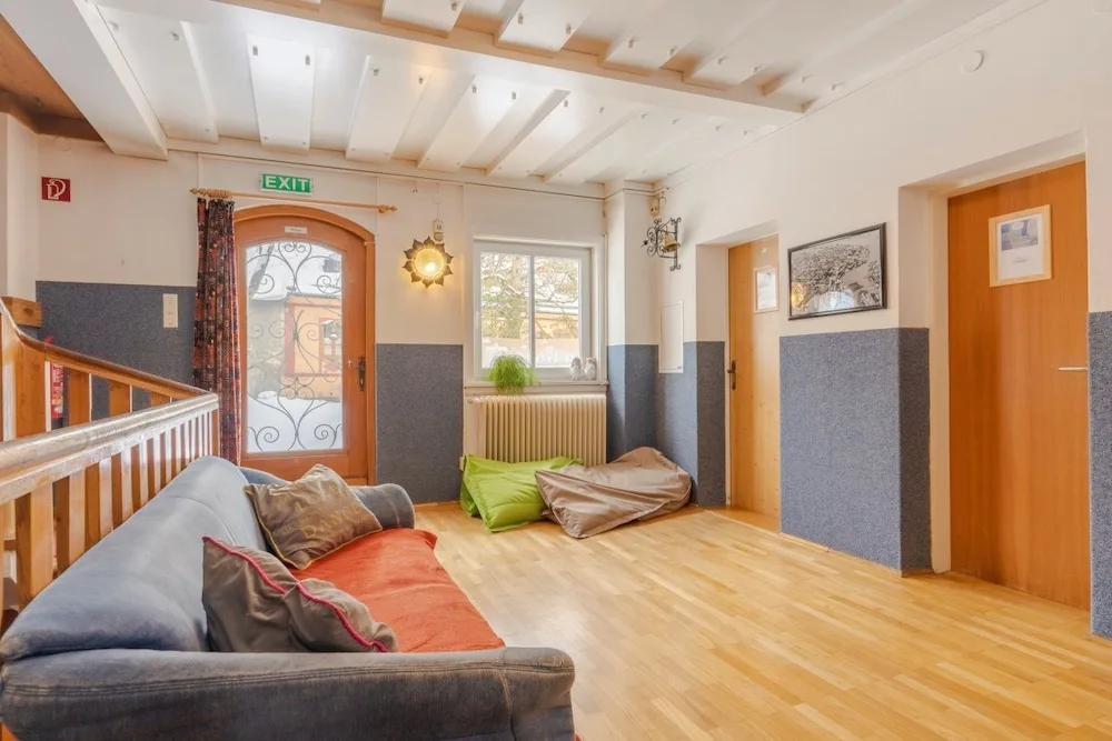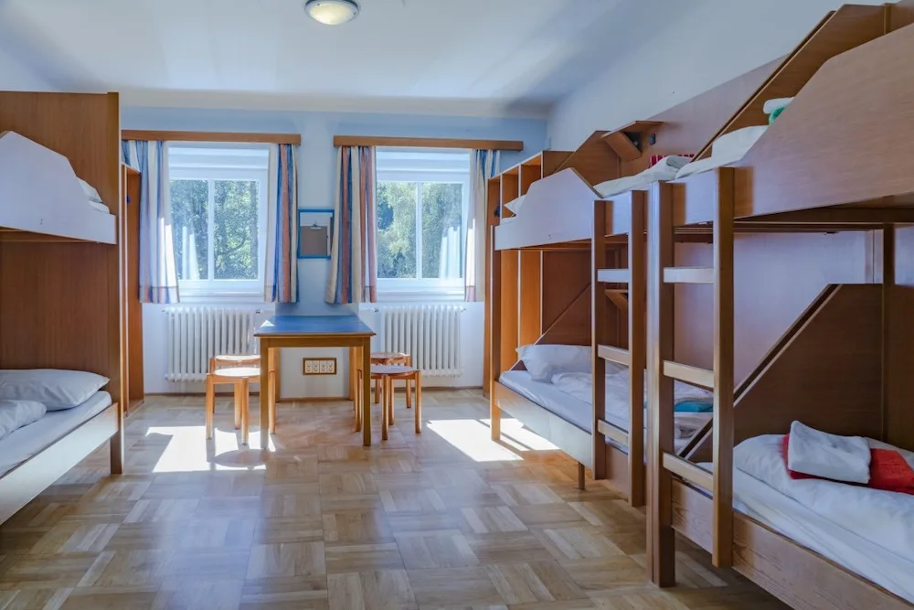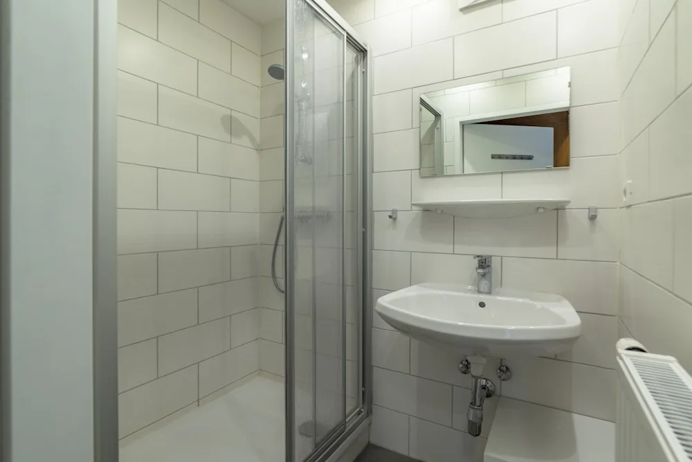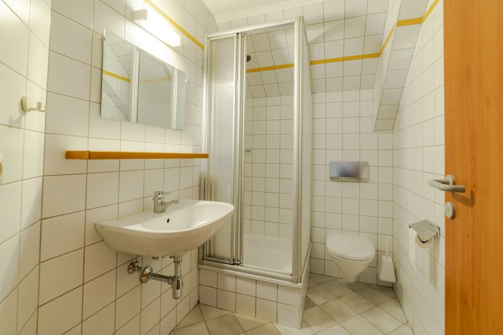 On the 2nd and 3rd floors are the bedrooms, all of which have their own showers. A few rooms also have their own toilets, but most toilets can be found in the hallways. The sanitary facilities are simple, but there are plenty of them (13 toilets). The 12 bedrooms range in size from 2 to 8 beds, with a total of 70 beds.