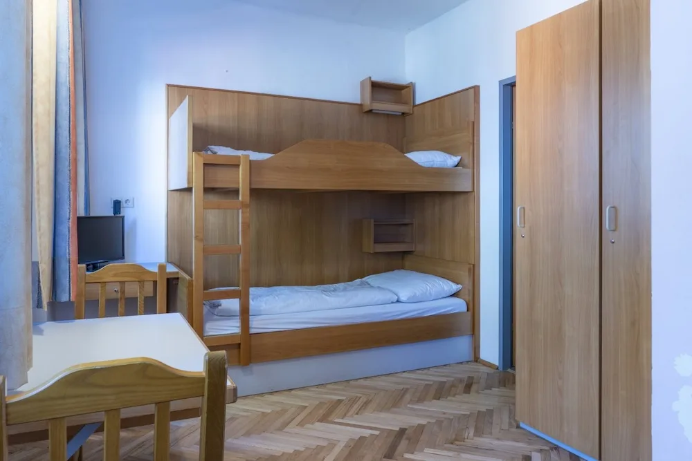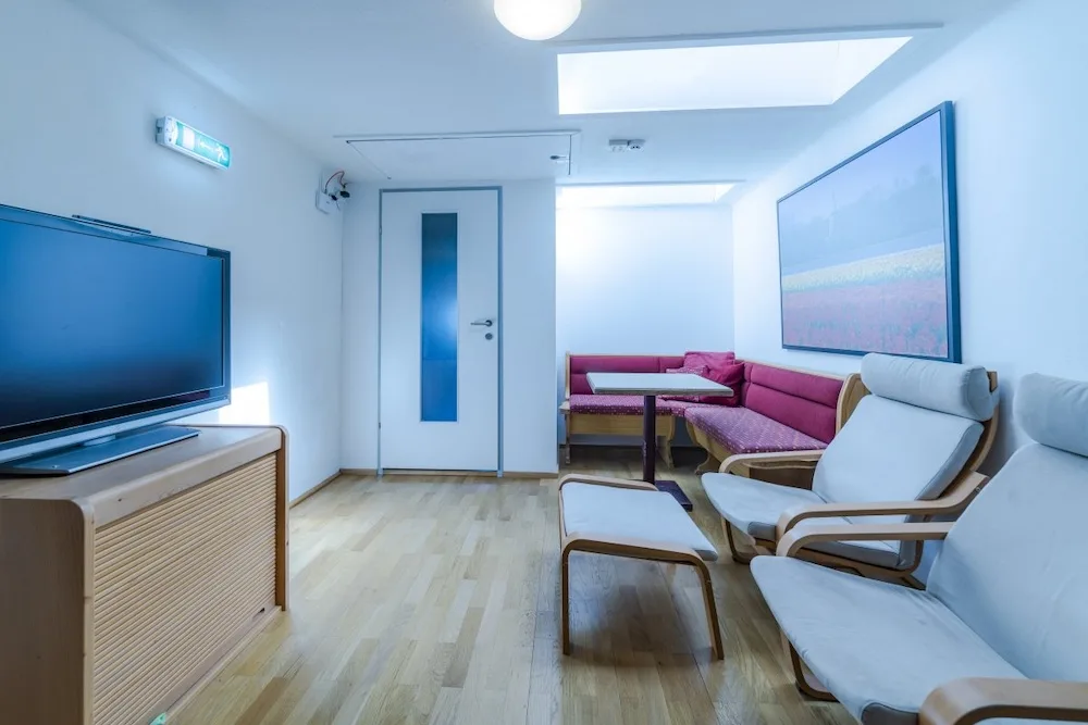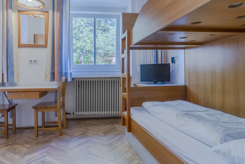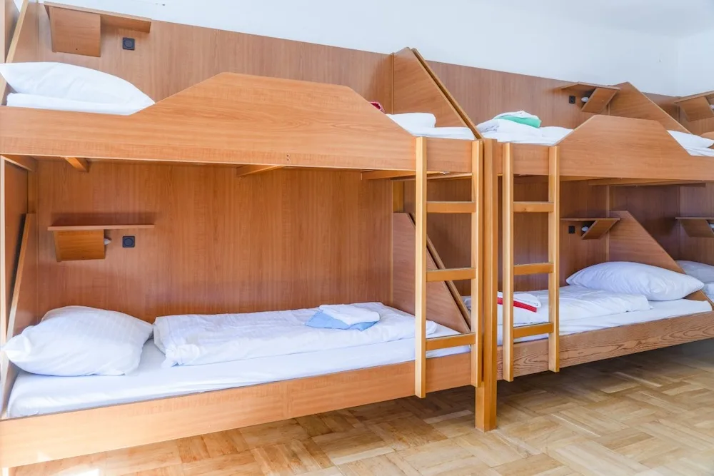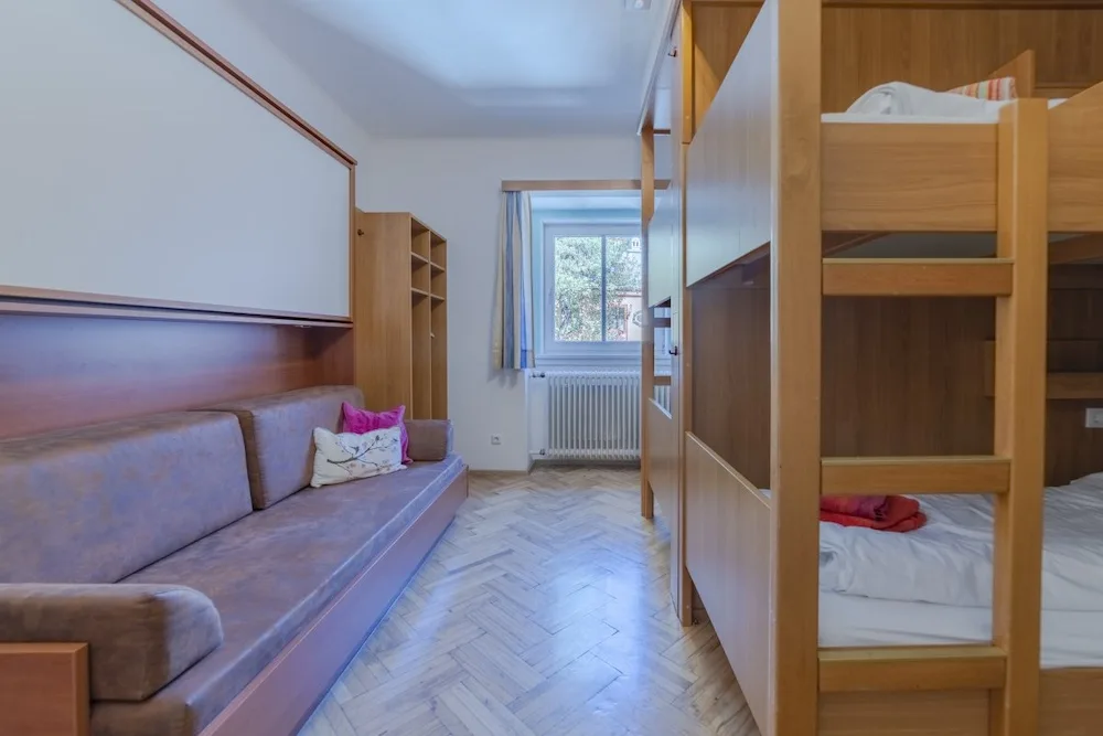 On the 2nd and 3rd floors are the bedrooms, all of which have their own showers. A few rooms also have their own toilets, but most toilets can be found in the hallways. The sanitary facilities are simple, but there are plenty of them (13 toilets). The 12 bedrooms range in size from 2 to 8 beds, with a total of 70 beds.