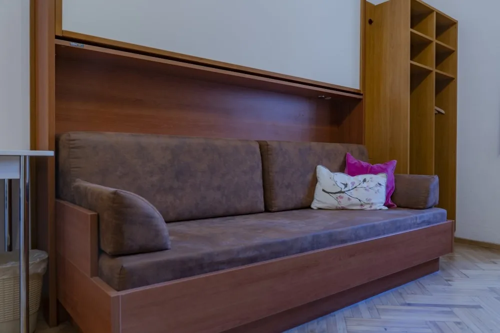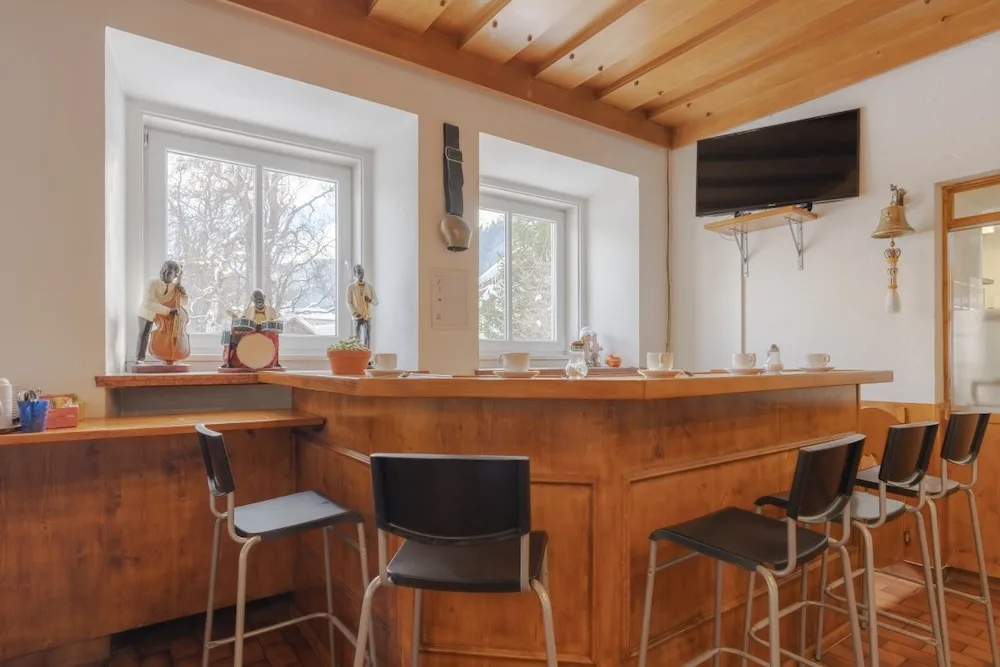 The house, with an area of 1,100m2, is arranged over four floors. On the ground floor there is space for mountain bikes, skis and (ski) shoes, a big dining hall and a lockable part for hosting discos, for example.