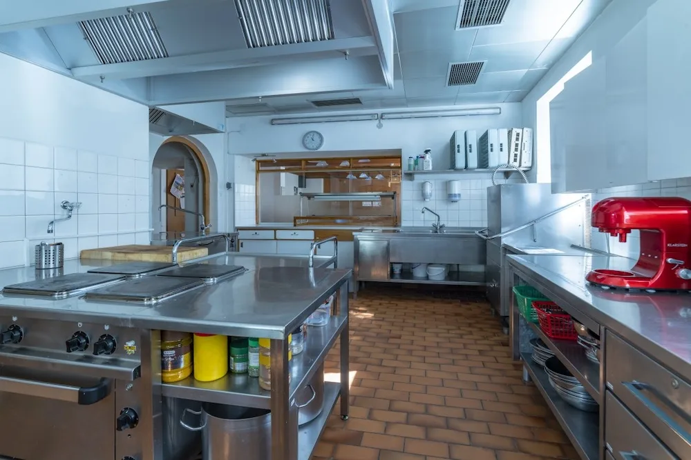 Recreation space, the dining hall and disco space are at your disposal. Your booking can be for breakfast or half board, or you can rent the house on an accommodation-only basis, including the kitchen which is equipped with professional machines.