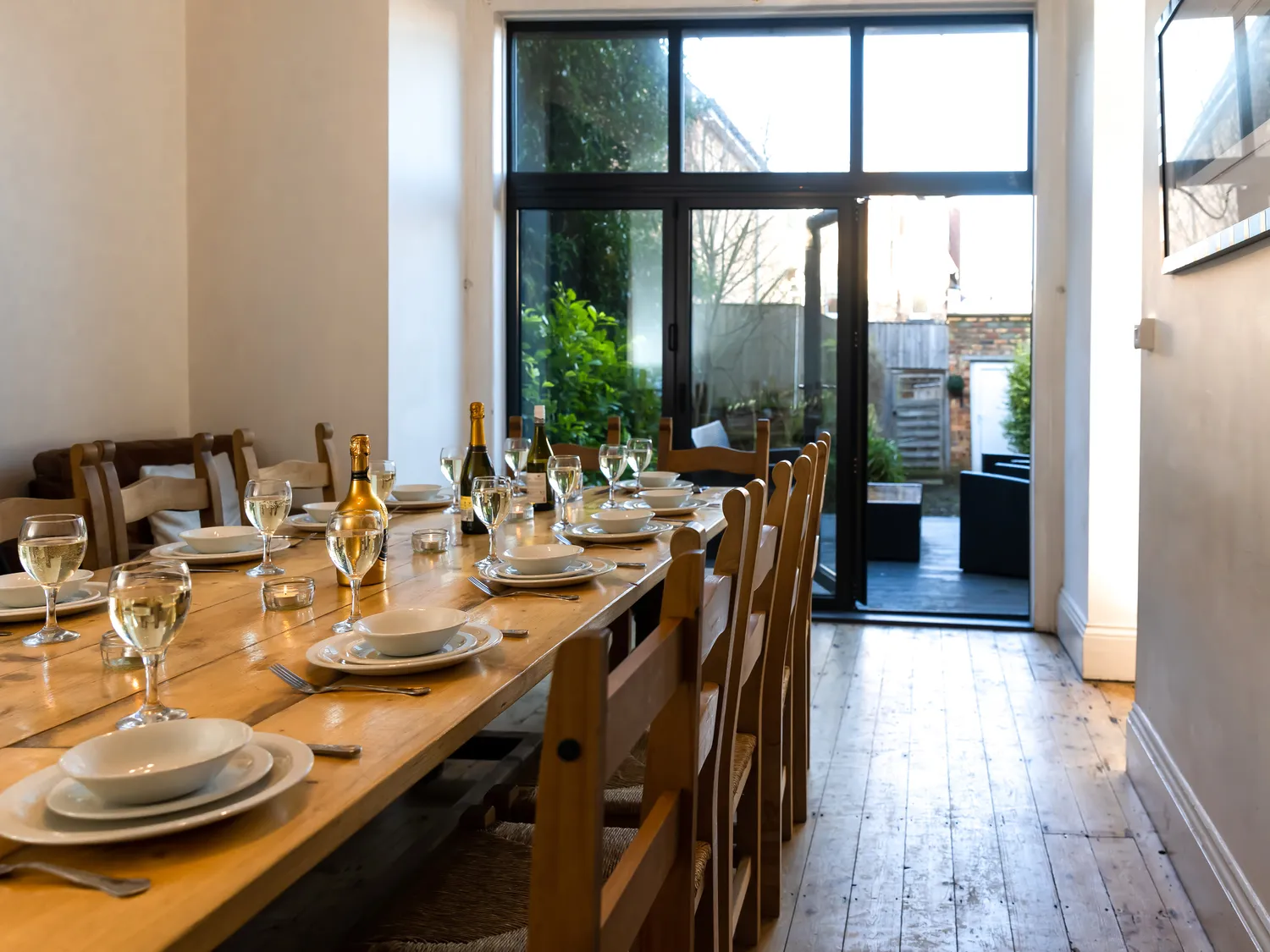 Next door, the dining room is warm and welcoming with a wood-burning stove and a large table big enough for everyone to gather round for a celebratory meal. The original wooden floors add character, and the bi-fold doors open straight onto the decking and enclosed garden.