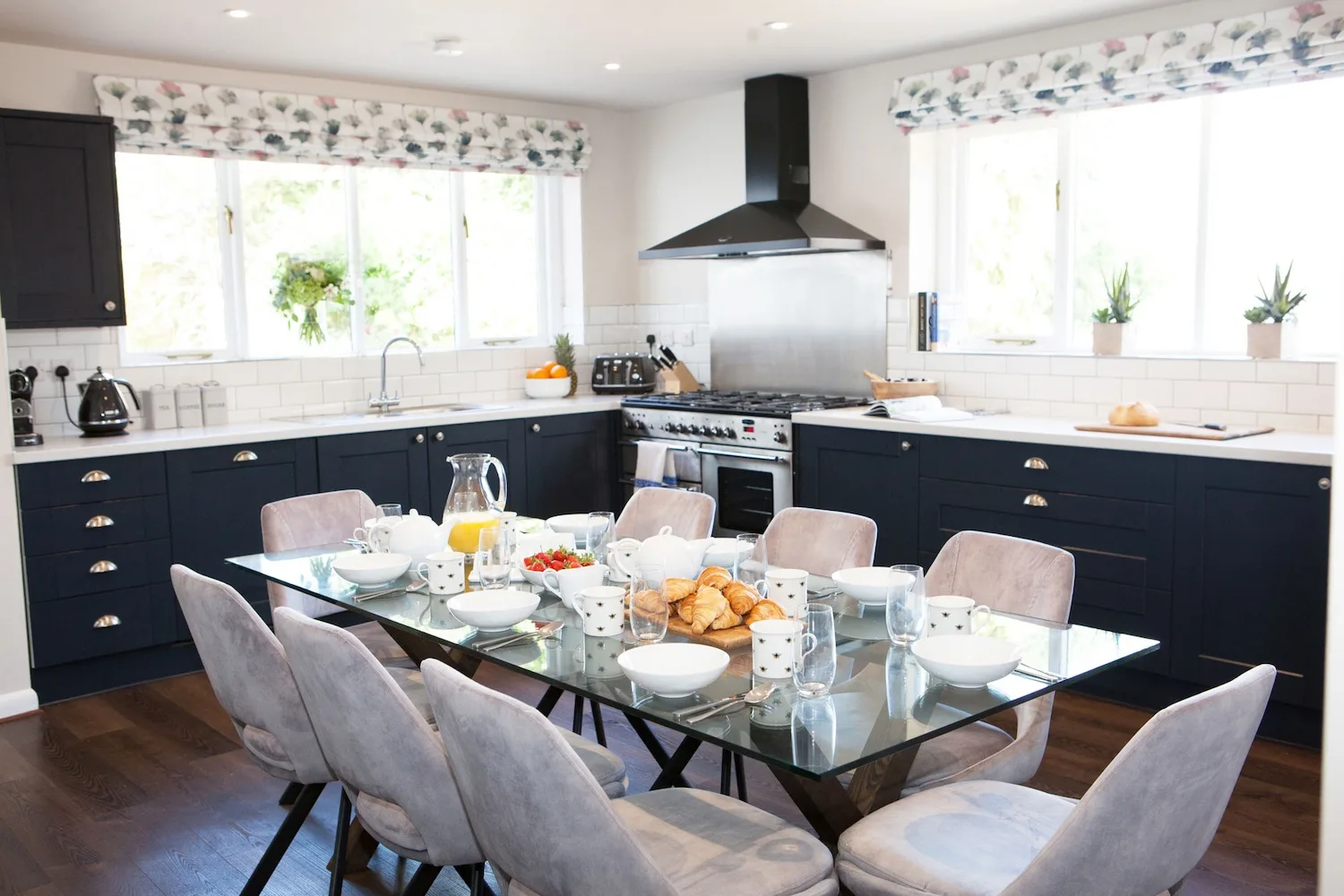 This characterful listed house is full of original features, including a baronial dining room that’s perfect for hosting, an elegant drawing room and a family-sized TV room — plenty of space for everyone to spread out. The grand entrance hall and staircase lead up to six luxury bedrooms with a mix of king and super-king beds (some can be made into twins), along with seven bathrooms or en-suites, plus an extra downstairs bedroom and shower room. The flexible layout makes it ideal for family gatherings, celebrations and special occasions.