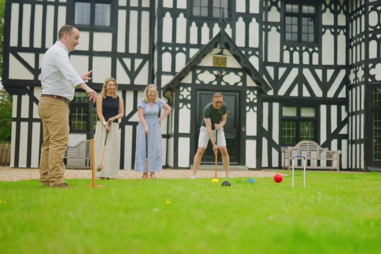 Outside, there’s loads to explore. Wander across the rolling lawns, have a go at croquet or take a dip in the heated outdoor pool. You can lounge by the water or relax in the shade of the pool house and soak up the Shropshire views. For families, there’s table tennis and a climbing frame with a slide, climbing wall and swings for energetic little ones. There’s even an outdoor games room for them to enjoy. And when evening comes, gather round the fire pit for marshmallows or enjoy dinner al fresco in the large outdoor seating area.