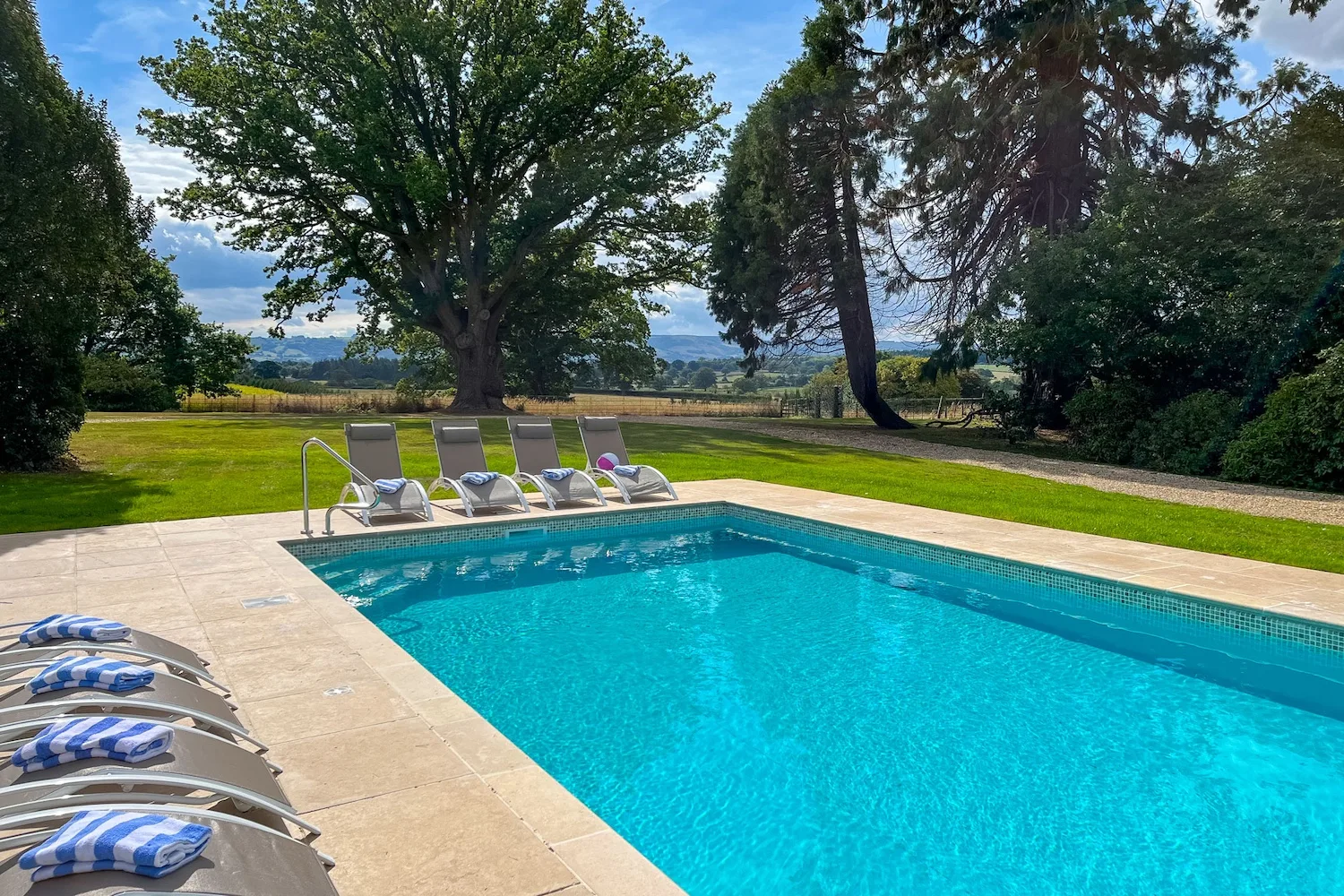 This stunning seven-bedroom country retreat with heated pool sleeps up to 14 guests and is the perfect spot for getaways with friends and family.