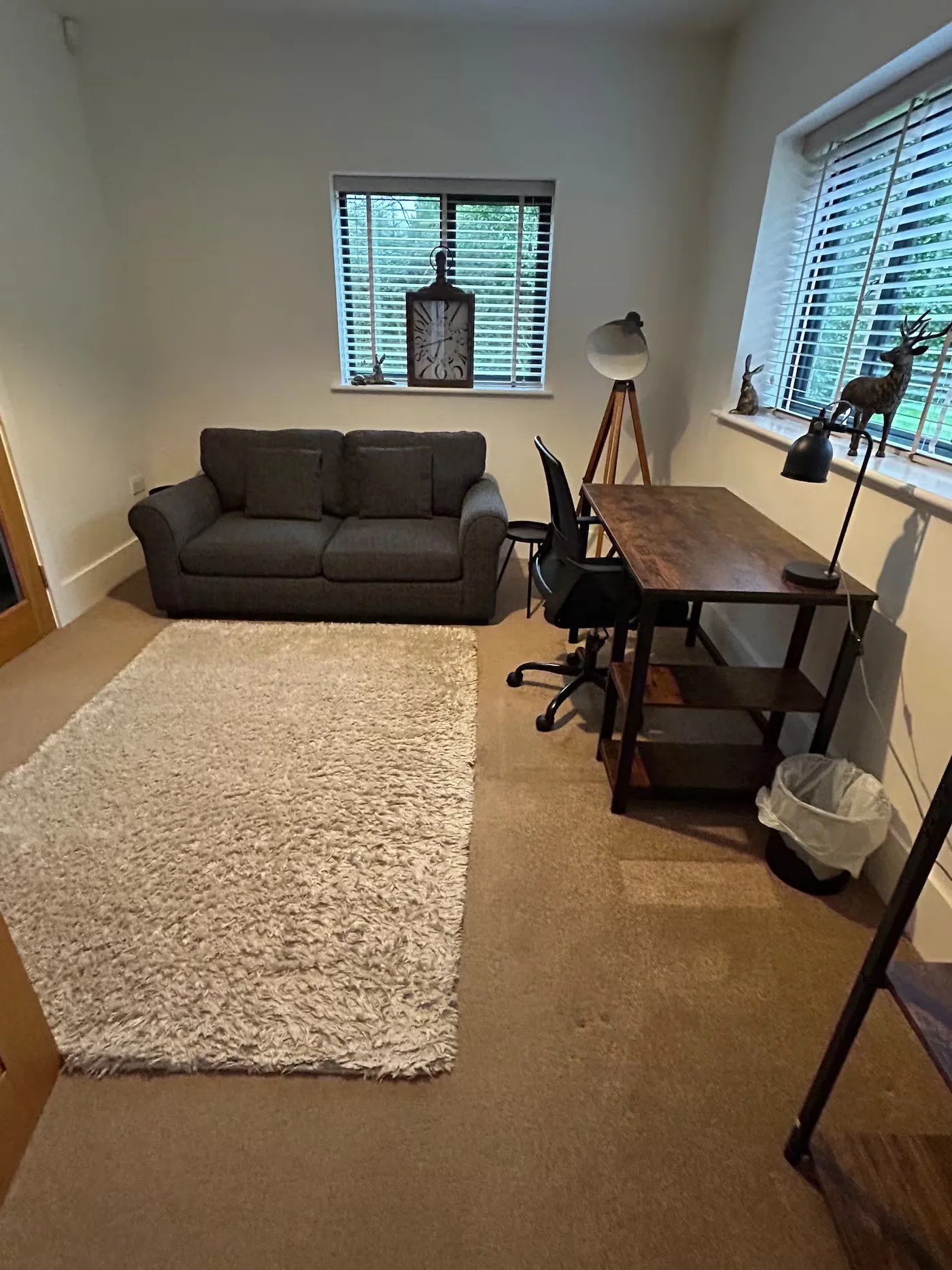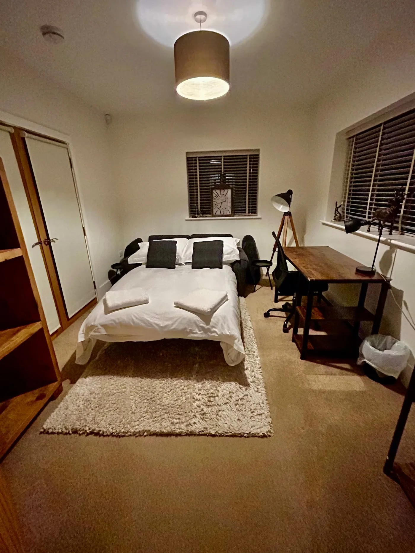 There are three bathrooms upstairs, a downstairs loo, and a pull-out sofa bed in the office if needed.