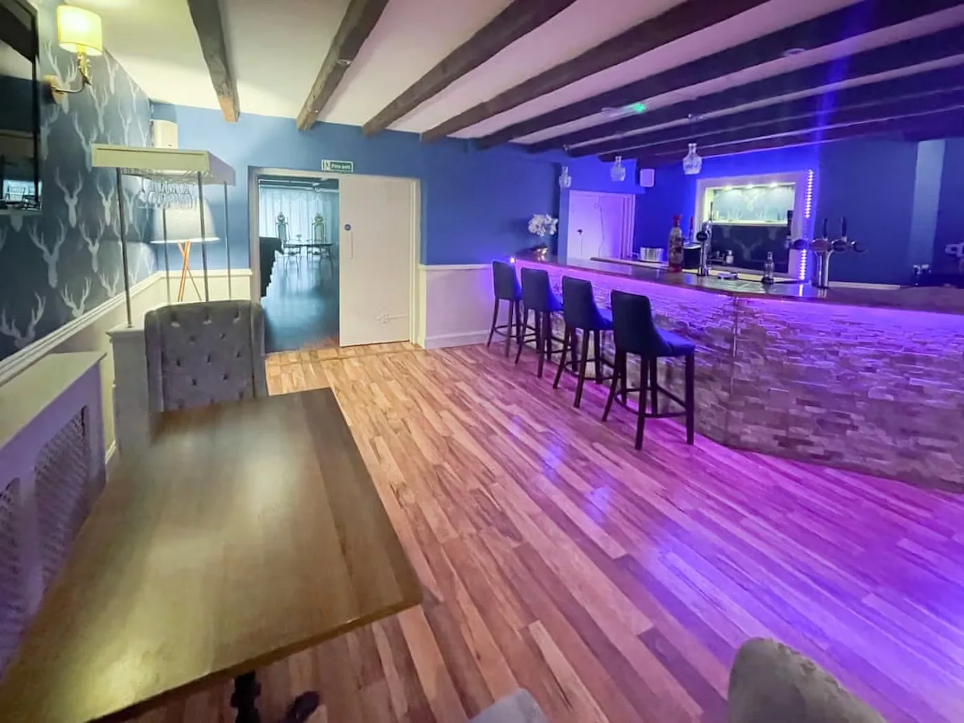 When it’s time to get the party started, there’s a large multi-purpose room with disco lights built into the ceiling – ideal for a night of dancing and fun. The next-door room can be set up as an extra bar, dining area, or just a chilled-out spot to hang out with friends and family.