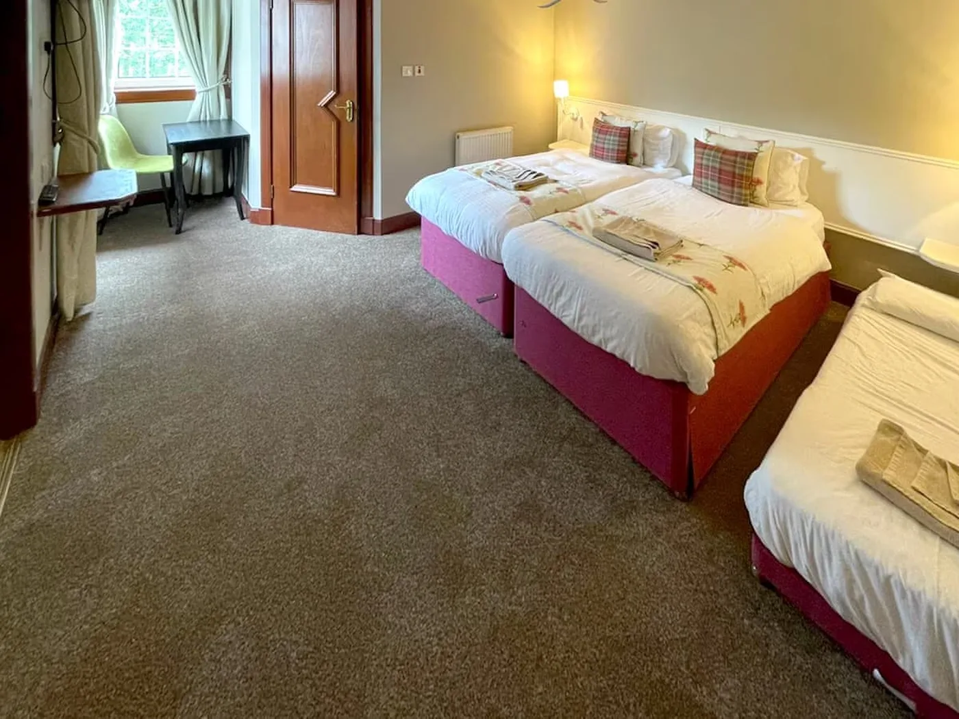 There are nine comfy en-suite bedrooms, each with its own style and a bit of country charm. You can pick from a luxurious super king room, four spacious king rooms, or four lovely twin rooms with double beds. Every room also has a pull-out single bed, so there’s loads of space for families or bigger groups.