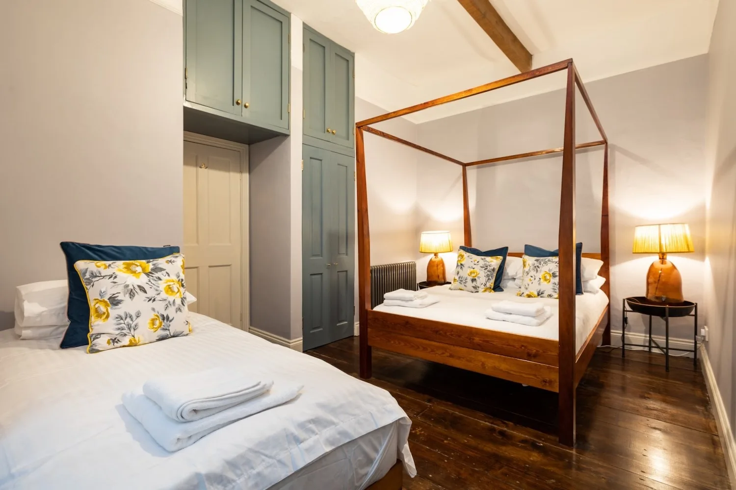 With 7 bedrooms, most with their own ensuite, the property comfortably sleeps up to 20 guests – and we can accommodate 2 extra people if needed. The bedrooms are full of character, featuring things like four-poster beds, beautifully carved headboards and even a cosy log burner in one of the rooms.