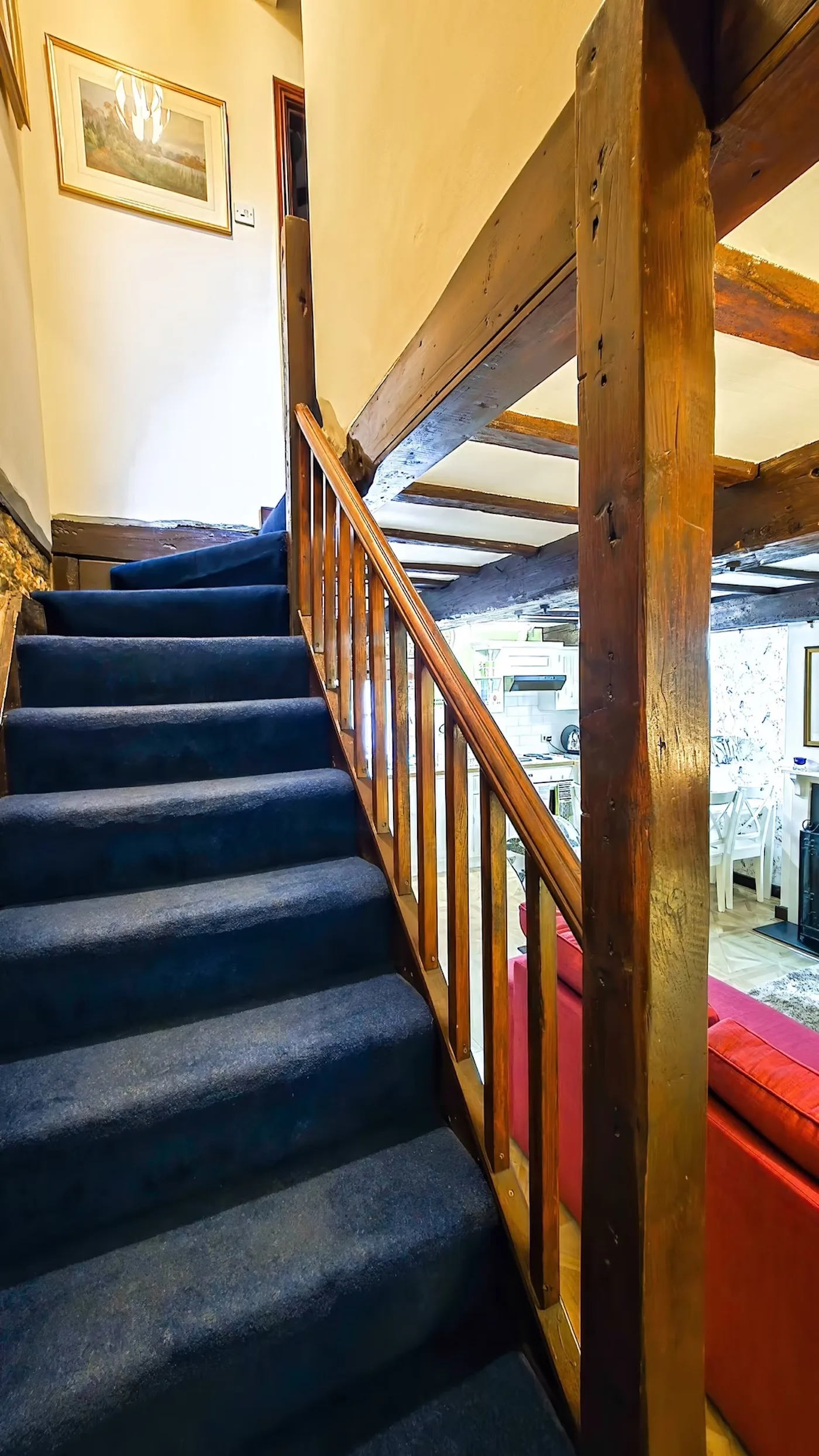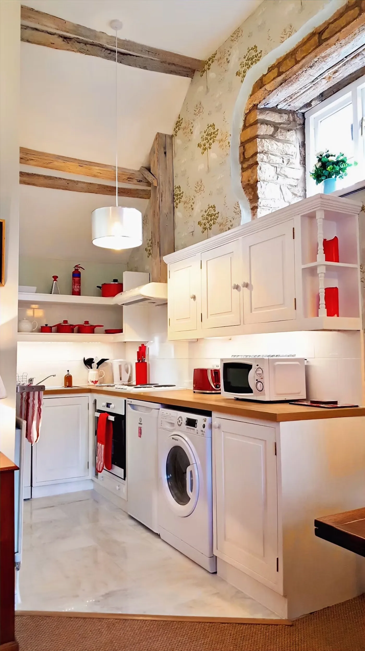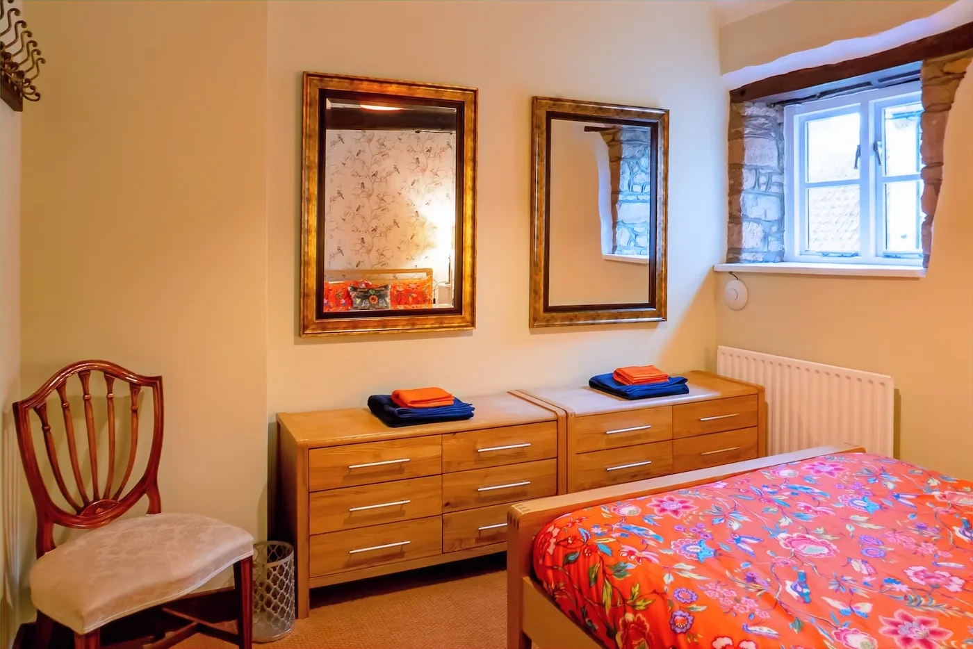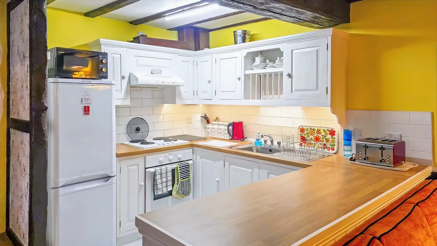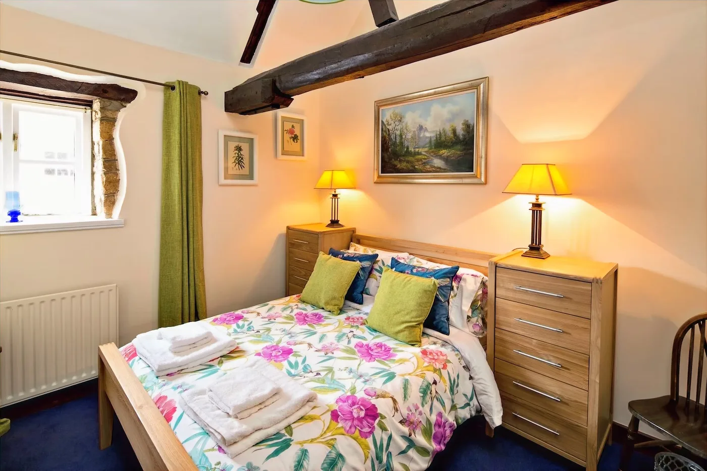 There’s also a lovely mezzanine level – the perfect place to curl up with a book or just enjoy the peaceful river views. The property has an open fireplace which you’re welcome to use, though please only burn smokeless fuel, as we’re in a conservation area.