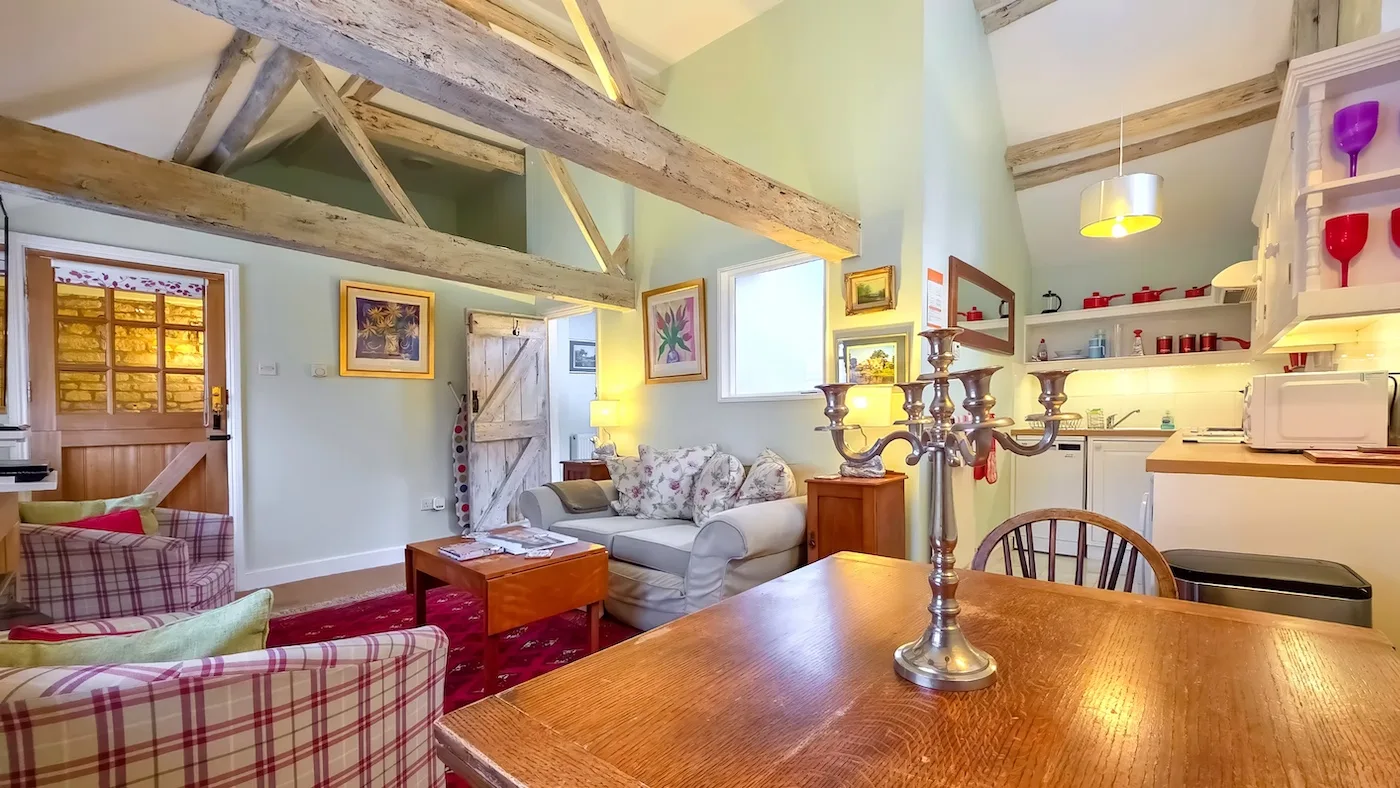 This beautiful, traditional stone barn has been thoughtfully converted and is full of character. It’s a listed property with two spacious double bedrooms that guests often say offer the best night’s sleep. There’s a large walk-in shower, a well-equipped bathroom, and a generous open-plan kitchen, dining and living area.