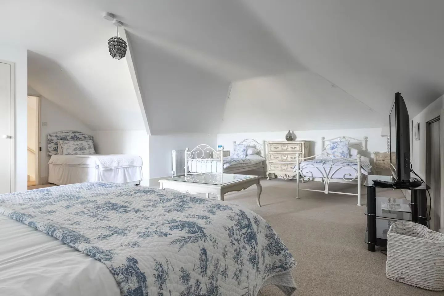 There’s a large en-suite attic room, three king-size doubles, a smaller double, and two twin rooms, one of which is on the ground floor for anyone with limited mobility. There are four big bathrooms and two extra WCs.